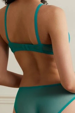 Le soutien-gorge Bel d’Eres est rĂ©alisĂ© en tulle stretch semi-transparent et habillĂ© d’une vive nuance bleu sarcelle, assortie Ă sa culotte coordonnĂ©e. Il est dĂ©pourvu de rembourrage et possĂšde des baleines latĂ©rales pour plus de structure. Ajustez-le parfaitement grĂące Ă ses bretelles rĂ©glables.