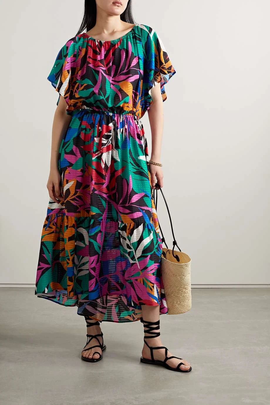 La marque Eres s’est inspirée de peintures colorées et de jardins ensoleillés pour créer la robe ample Feuillages Citron. Elle est confectionnée en jacquard de soie satinée léger, présente une jupe à empiècement ondoyante et possède une encolure élastiquée, que vous pourrez confortablement porter sur ou sous vos épaules. Nouez sa ceinture en lin et en coton mélangés pour souligner votre taille.