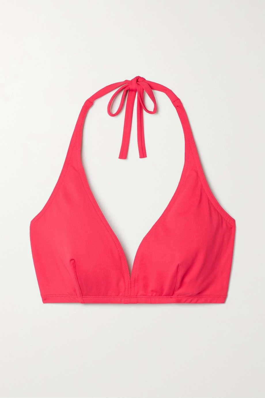 Le tissu Peau Douce emblématique d’Eres est doux, confortable et offre un léger maintien. Ce haut de bikini rose vif adopte une coupe triangle classique adaptée aux poitrines petites à moyennes. Voilà un maillot intemporel qui vous accompagnera longtemps.