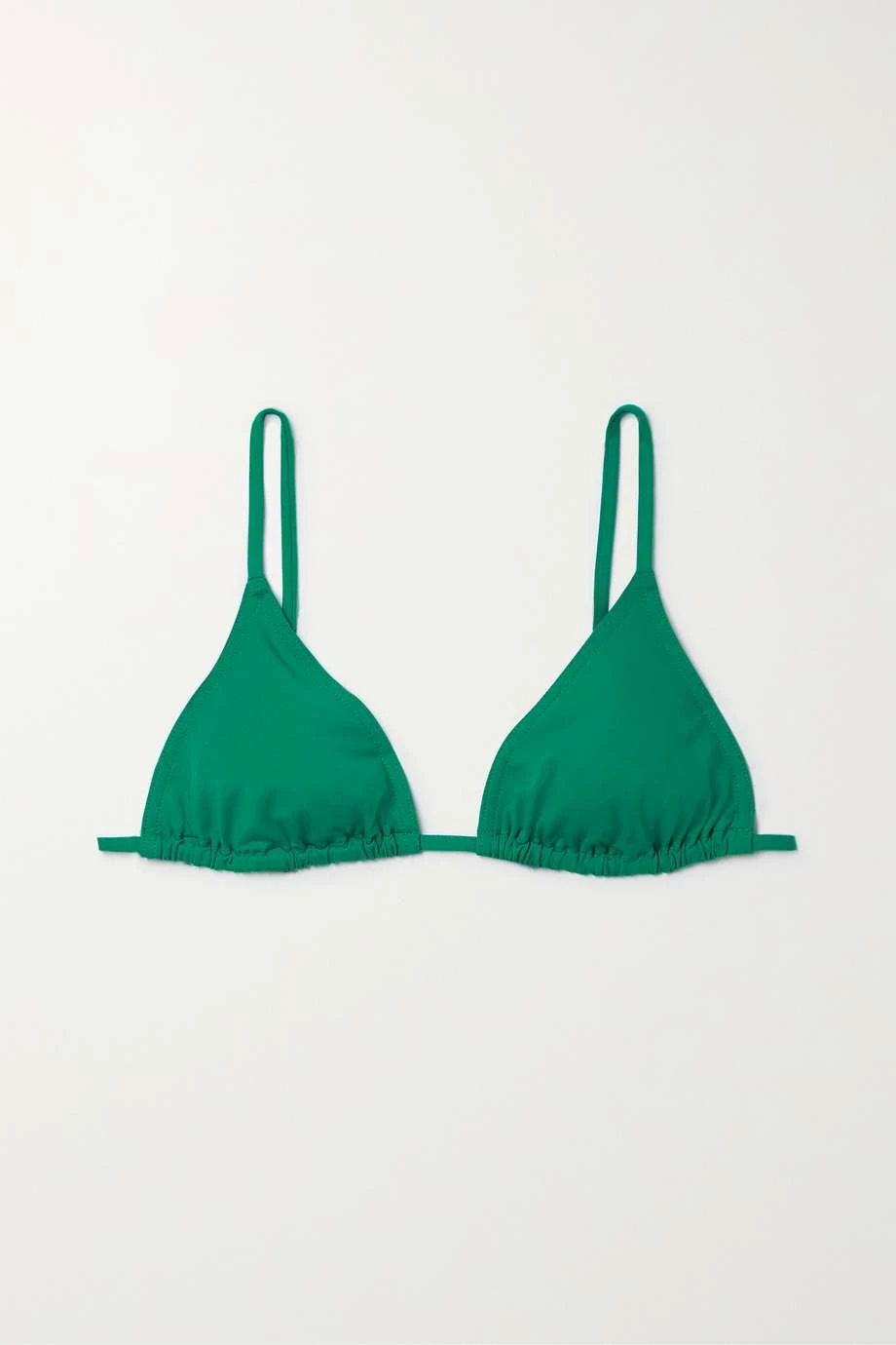 Ce haut de bikini vert jade est issu de la ligne Les Essentiels d’Eres, constituée de maillots de bain intemporels et flatteurs pour toutes les silhouettes. Il est pourvu de bonnets triangle et se noue au dos pour un ajustement personnalisé. Portez-le avec la culotte assortie ou avec des modèles d’autres couleurs.