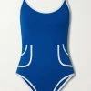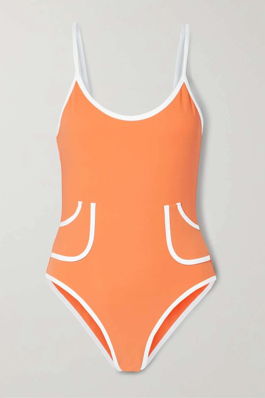 Le maillot de bain Course est issu de la collection d’inspiration vintage Nautic d’Eres, qui se caractérise par une esthétique sportive unique. Il est réalisé en tissu stretch orange et agrémenté de finitions blanches contrastantes le long de ses poches et de son dos arrondi échancré.