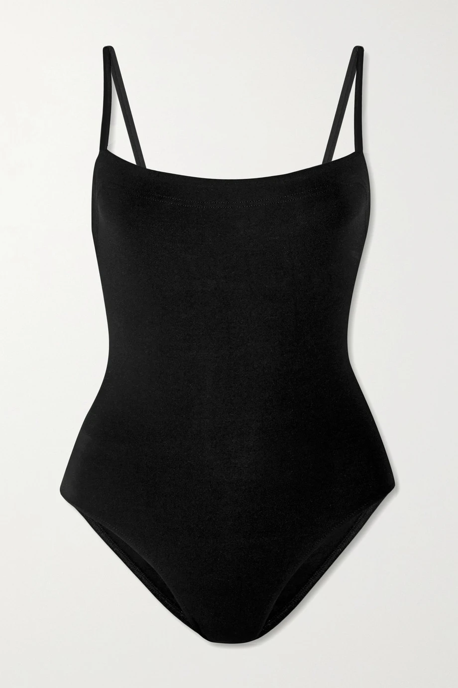 Les maillots de bain Eres « respectent la structure du corps tout en mettant en valeur ses lignes et ses courbes ». Le une-pièce Les Essentiels Aquarelle est minutieusement confectionné à partir du tissu Peau Douce emblématique de la marque. Doté d’une encolure carrée et d’un bas échancré, il crée ainsi une silhouette extrêmement flatteuse. Associez-le à un chapeau de soleil pour une séance de détente au bord de la piscine.