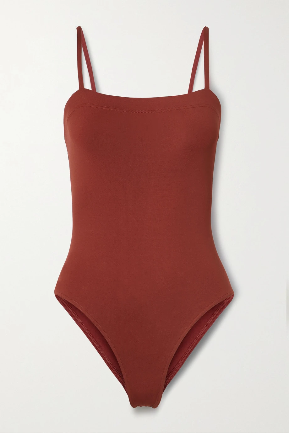 Le maillot de bain Aquarelle, issu de la ligne Les Essentiels d’Eres, est confectionné en France à partir de tissu stretch lissant, un matériau qui sculpte la silhouette et flatte toutes les morphologies. Ce modèle moyennement couvrant est dépourvu d’armatures et de rembourrage et présente une allure épurée. Sa somptueuse nuance terracotta mettra en valeur de nombreuses carnations, tandis que sa coupe échancrée créera l’illusion de jambes plus élancées.
