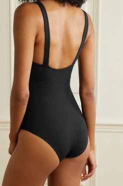 Le maillot de bain Arnaque d’Eres est confectionné dans le tissu lissant Peau Douce de la marque. Ce une-pièce dispose de bretelles épaisses et d’une large bande sous la poitrine pour sculpter les courbes et offrir plus de maintien. L’encolure carrée est particulièrement flatteuse pour les silhouettes athlétiques.