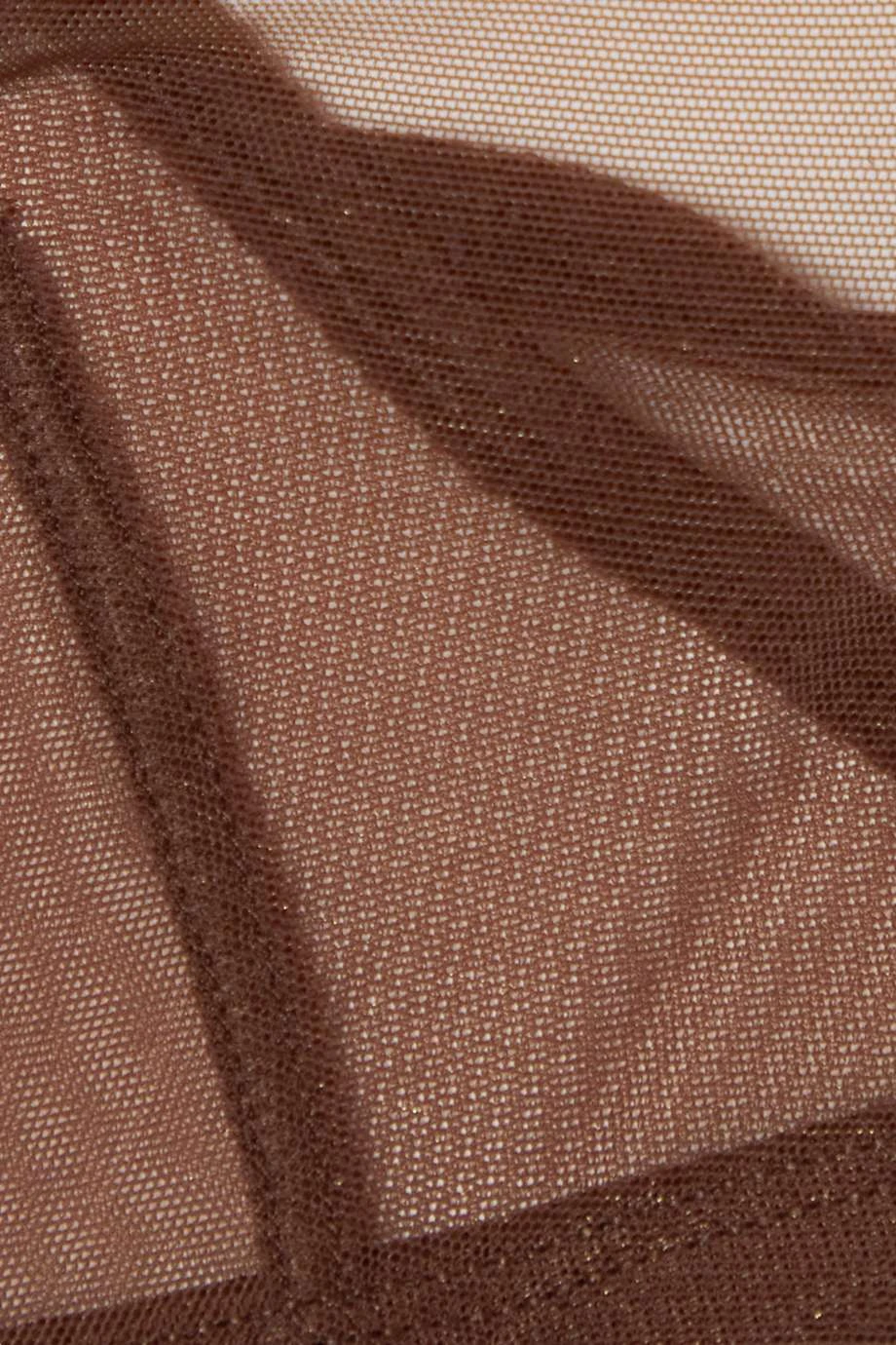 Le soutien-gorge à bonnets souples Providence d’Eres démontre que la lingerie peut et doit être belle et confortable à la fois. Il est réalisé à partir de tulle stretch transparent qui épousera vos formes comme une seconde peau, doté d’un décolleté en V maintenu par des finitions rigides et pourvu d’une bande élastique sous la poitrine, qui ne vous serrera et ne nous irritera pas. Portez le vôtre avec la culotte assortie.