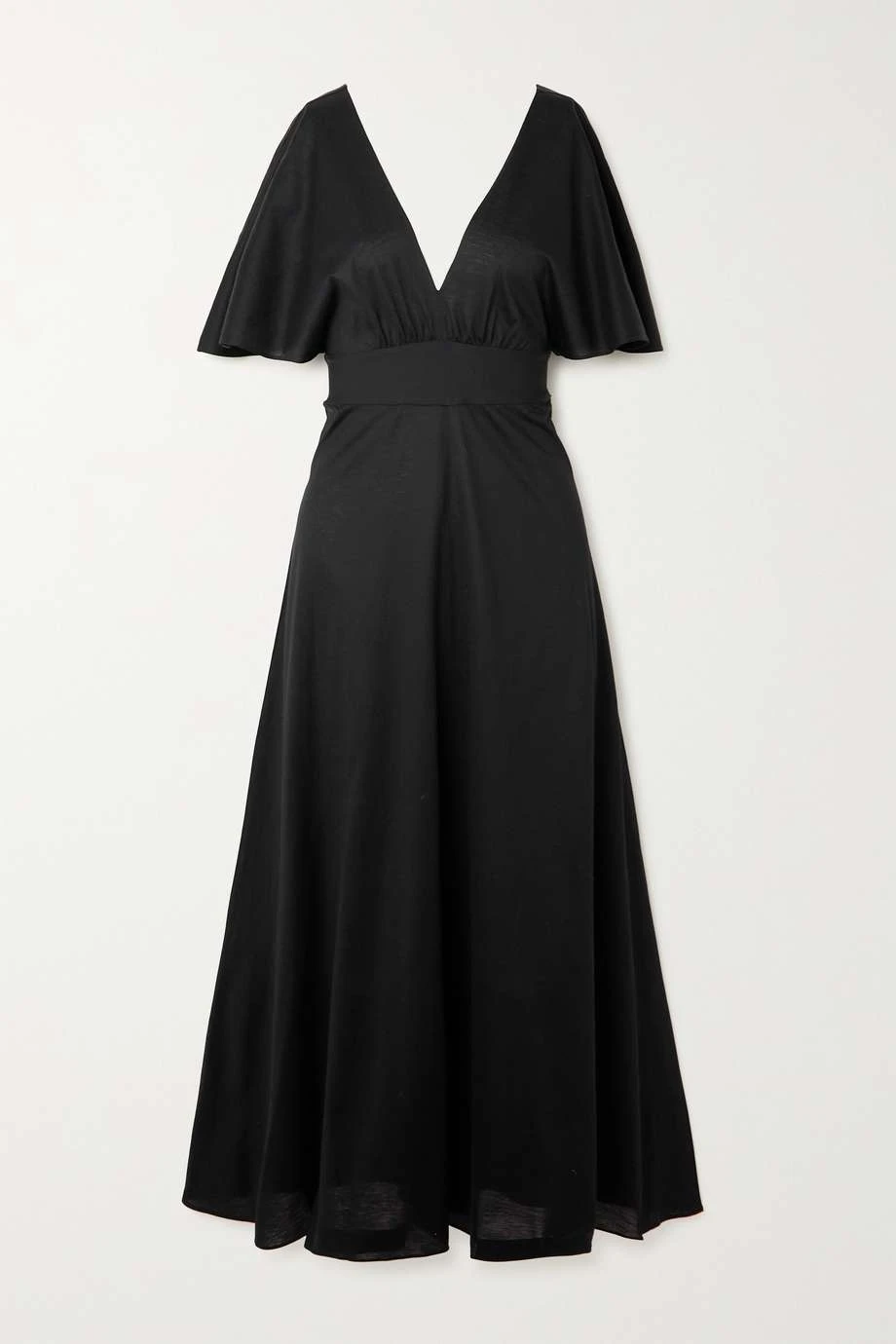 Cette jolie robe en coton d’Eres sera idéale pour profiter de la douceur et de l’allégresse des soirées estivales. Parfaite pour danser, elle est dotée de manches papillon qui suivront gracieusement vos mouvements ainsi que d’une jupe longue ondoyante qui s’épanouira élégamment. Tirez parti de son décolleté plongeant en mettant en lumière votre pendentif favori.