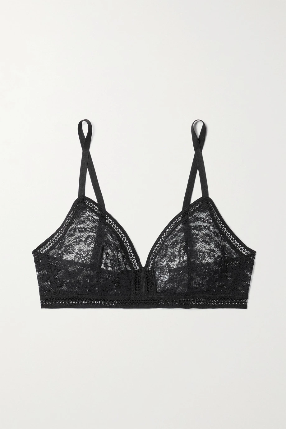 Ce soutien-gorge triangle d’Eres est confectionné en délicate dentelle Leavers et agrémenté d’un peu de stretch, ce qui en fait une pièce à la fois romantique et confortable pour le quotidien. Il est dépourvu de rembourrage, souligné du point Vous-et-Moi de la marque et doté de bretelles réglables pour un ajustement irréprochable. Composez une parure en l’accompagnant de la culotte coordonnée.