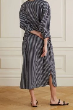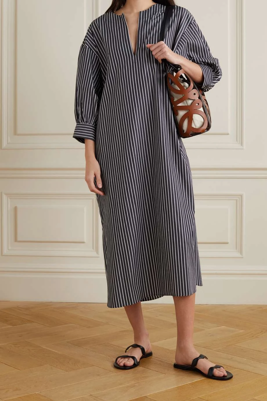 Le cafetan Rivage d’Eres est confectionné en France en voile de coton léger, habillé de rayures noires et blanches. Il est doté d’élégantes manches bouffantes, et son encolure est généreusement fendue. Enfilez-le par-dessus un maillot de bain ou portez-le en guise de robe et soulignez votre taille à l’aide d’une ceinture.
