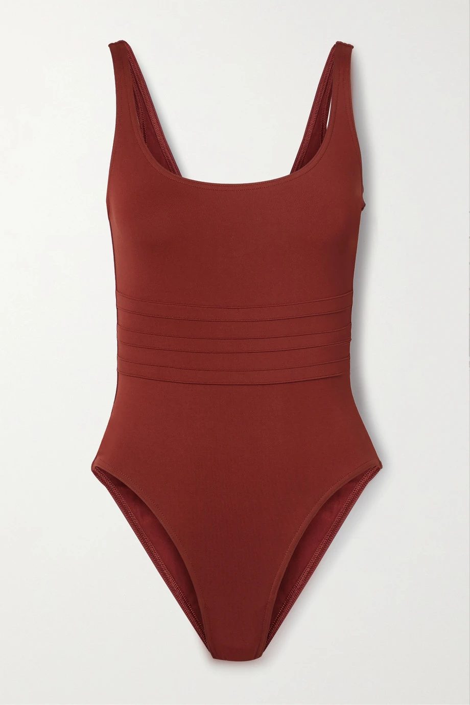 Malgré sa grande douceur, le tissu Peau Douce innovant d’Eres est suffisamment résistant pour ne pas se déformer lorsqu’il est mouillé. Le maillot de bain Asia est confectionné en France à partir de ce dernier et issu de la collection Les Essentiels. Flatteur, il se caractérise par son encolure arrondie, son dos profondément échancré et ses empiècements qui sculpteront discrètement votre taille : le une-pièce idéal pour faire quelques longueurs avant de vous détendre au bord de la piscine.
