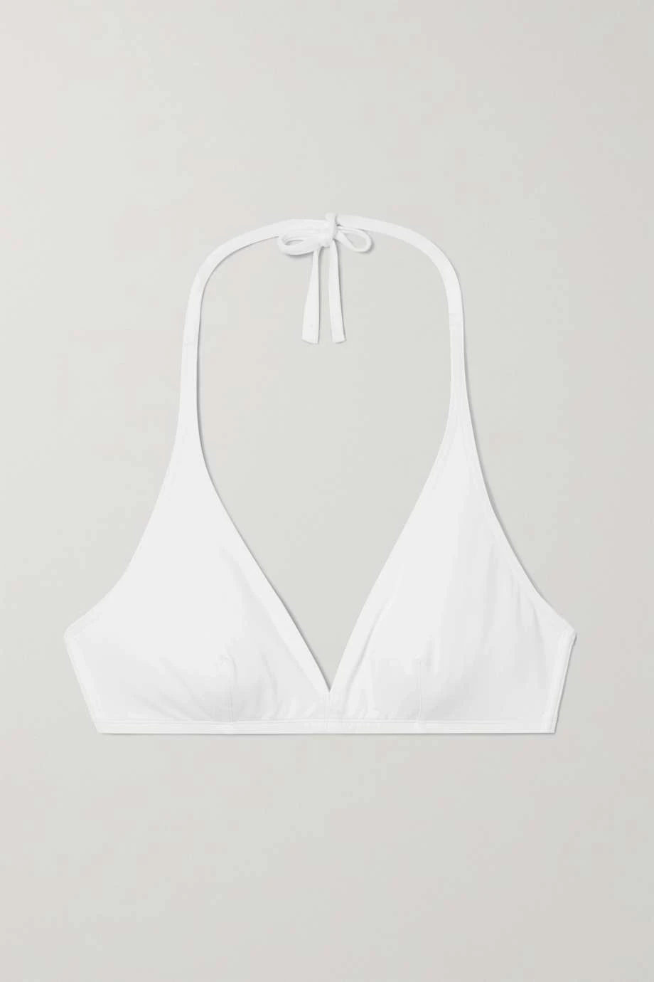 Ce haut de bikini est issu de la collection Les Essentiels de la marque française Eres. Il est rĂ©alisĂ© Ă partir de son Ă©toffe Peau Douce phare, qui est fortement apprĂ©ciĂ©e pour son fini dĂ©licatement sculptant. Ses bonnets triangle ont Ă©tĂ© pincĂ©s et lĂ©gĂšrement baleinĂ©s sur les cĂŽtĂ©s, pour vous apporter du maintien, et sont retenus par des liens dos nu Ă nouer Ă la nuque, en fonction de votre prĂ©fĂ©rence. Formez l’ensemble en lui associant la culotte coordonnĂ©e lorsque vous irez Ă la plage cet Ă©tĂ©.