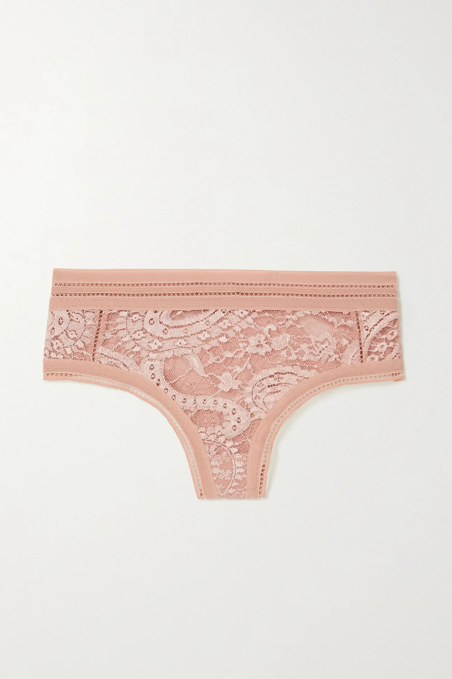 Ce string taille haute moyennement couvrant d’Eres est réalisé en dentelle stretch d’un rose dragée plein de douceur. Complétez l’ensemble avec le soutien-gorge assorti.