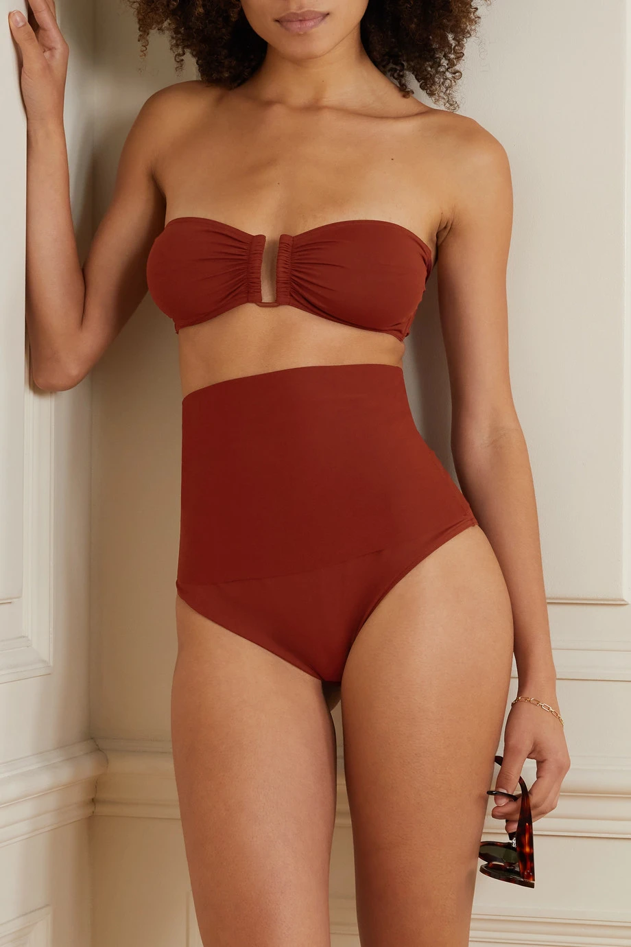 Cette culotte de bikini Les Essentiels d’Eres, réalisée à partir du tissu Peau Douce sculptant de la marque, est conçue pour flatter la plupart des morphologies. Bien couvrante, elle adopte une taille très haute. Formez un ensemble en l’associant à l’un des hauts assortis et emmenez le tout dans votre valise pour des vacances actives à la plage.