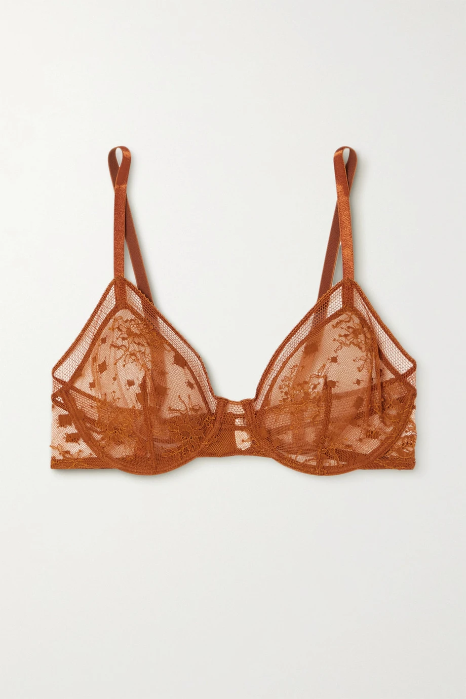 Le soutien-gorge Ambree d’Eres, réalisé en tulle léger, est orné de picots et brodé de jolies fleurs ton sur ton qui sembleront flotter sur votre peau. Il possède des bonnets couvrants doté d’armatures flexibles. Ajustez ses bretelles à votre convenance.
