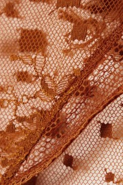 Cette culotte signée Eres revêt une nuance bronze chaude qui siéra particulièrement aux peaux plus foncées. Elle est confectionnée en tulle transparent qui contient une pointe de stretch, et dotée de finitions crochetées en picot. Complétez votre parure avec le soutien-gorge assorti.