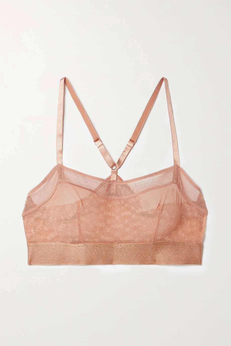 La brassiĂšre Figure d’Eres est rĂ©alisĂ©e en France Ă partir de tulle stretch transparent et confortable, et s’avĂšre brodĂ©e de logos sur toute sa surface. Elle est munie de bretelles ajustables formant un dos nageur et prĂ©sente une bande brillante Ă©lastiquĂ©e sous la poitrine, qui vous offrira un maintien subtil et un joli galbe.