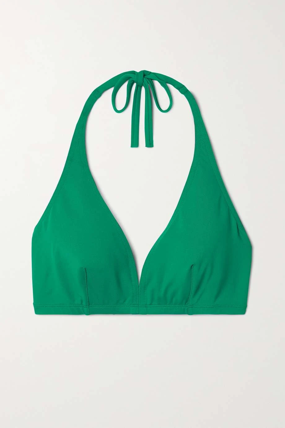 Le tissu Peau Douce emblématique d’Eres est doux, confortable et offre un léger maintien. Ce haut de bikini adopte une coupe triangle classique adaptée aux poitrines petites à moyennes. Voilà un maillot intemporel qui vous accompagnera longtemps.