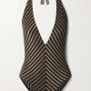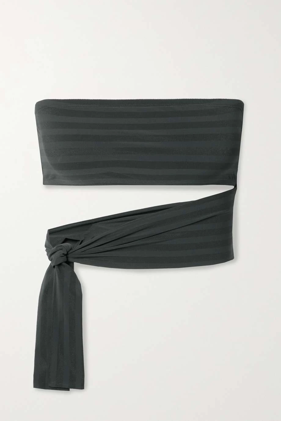 Le haut de bikini bandeau Backgammon Diamond d’Eres se distingue par son empiècement noué réglable qui crée une découpe élégante. Il est réalisé à partir d’un tissu stretch lisse à rayures noires et anthracite, qui scintillera joliment au soleil. Portez-le avec la culotte assortie Hasard.