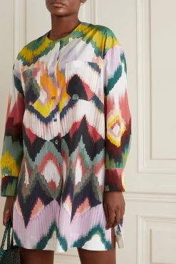 Cette tunique Eres pourvue d’une fermeture boutonnĂ©e sur le devant sera parfaite Ă enfiler sur l’un des bikinis du label aprĂšs une journĂ©e passĂ©e au bord de l’eau. Elle est confectionnĂ©e Ă partir d’un doux voile de coton et de soie mĂ©langĂ©s et imprimĂ©e d’un motif ikat colorĂ©, inspirĂ© de la technique de teinture traditionnelle indonĂ©sienne.