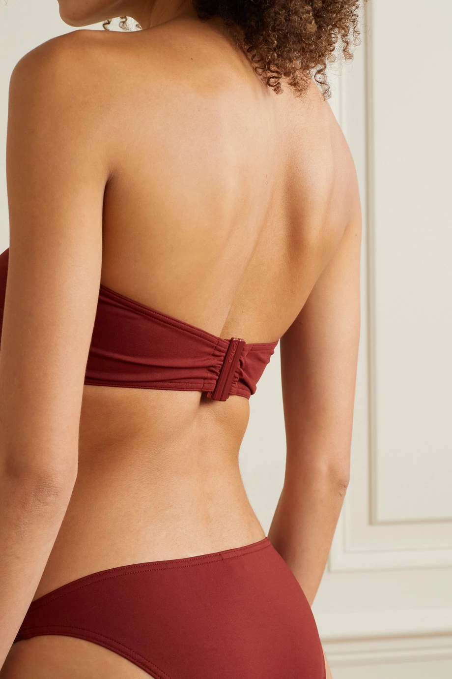 Eres comprend l’importance de la coupe, de l’ajustement et de l’opacité lorsqu’il s’agit des maillots de bain. Le haut de bikini Les Essentiels Show est réalisé à partir du tissu Peau Douce de la marque qui conserve sa forme même après un plongeon dans l’eau. Il est pourvu de baleines sur les côtés pour plus de maintien, alors vous pouvez être sûre qu’il ne bougera pas lors d’une baignade matinale.