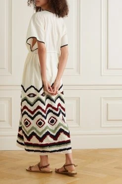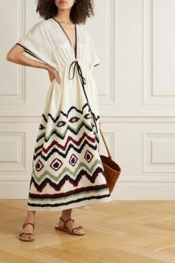 Le maillot de bain ou le bikini parfait doit être accompagné d’une robe toute aussi ravissante pour vous couvrir. Cette création Eres est réalisée en coton qui laisse la peau respirer et brodée de fils en molleton colorés à l’ourlet. Elle est dotée de cordons de serrage à la taille qui vous permettront de tempérer sa coupe ample.