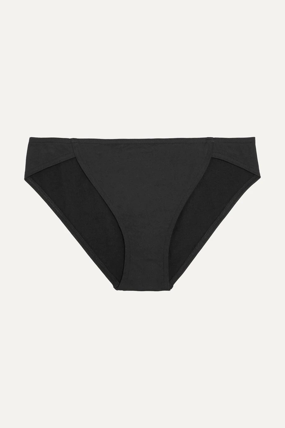 La culotte de bikini Les Essentiels d’Eres est fait du tissu Peau Douce sculptant de la marque qui sèche rapidement. Elle est dotée d’une taille basse et moyennement couvrante.