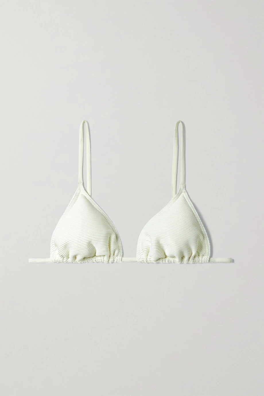 Ce haut de bikini signĂ© Eres, Ă la silhouette triangle classique, est confectionnĂ© en tissu stretch cĂŽtelĂ© blanc et doublĂ© pour garantir son opacitĂ©. Il est dotĂ© de fins liens en Peau Douce, que vous pourrez nouer pour l’ajuster parfaitement. Associez-lui la culotte assortie et un parĂ©o colorĂ©.