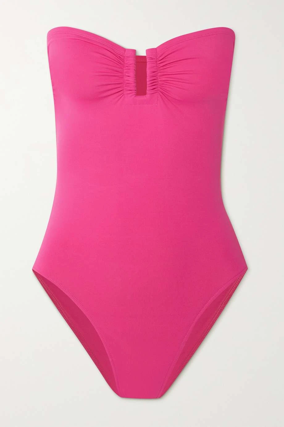 Indispensable à votre garde-robe de vacances, cet élégant maillot de bain bustier signé Eres est réalisé à partir du tissu Peau Douce emblématique de la marque, qui vous dessinera une silhouette ultra-galbée. Il est doté d’une boucle en U dissimulée offrant davantage de structure et d’une bande adhésive interne qui le maintiendra parfaitement en place.