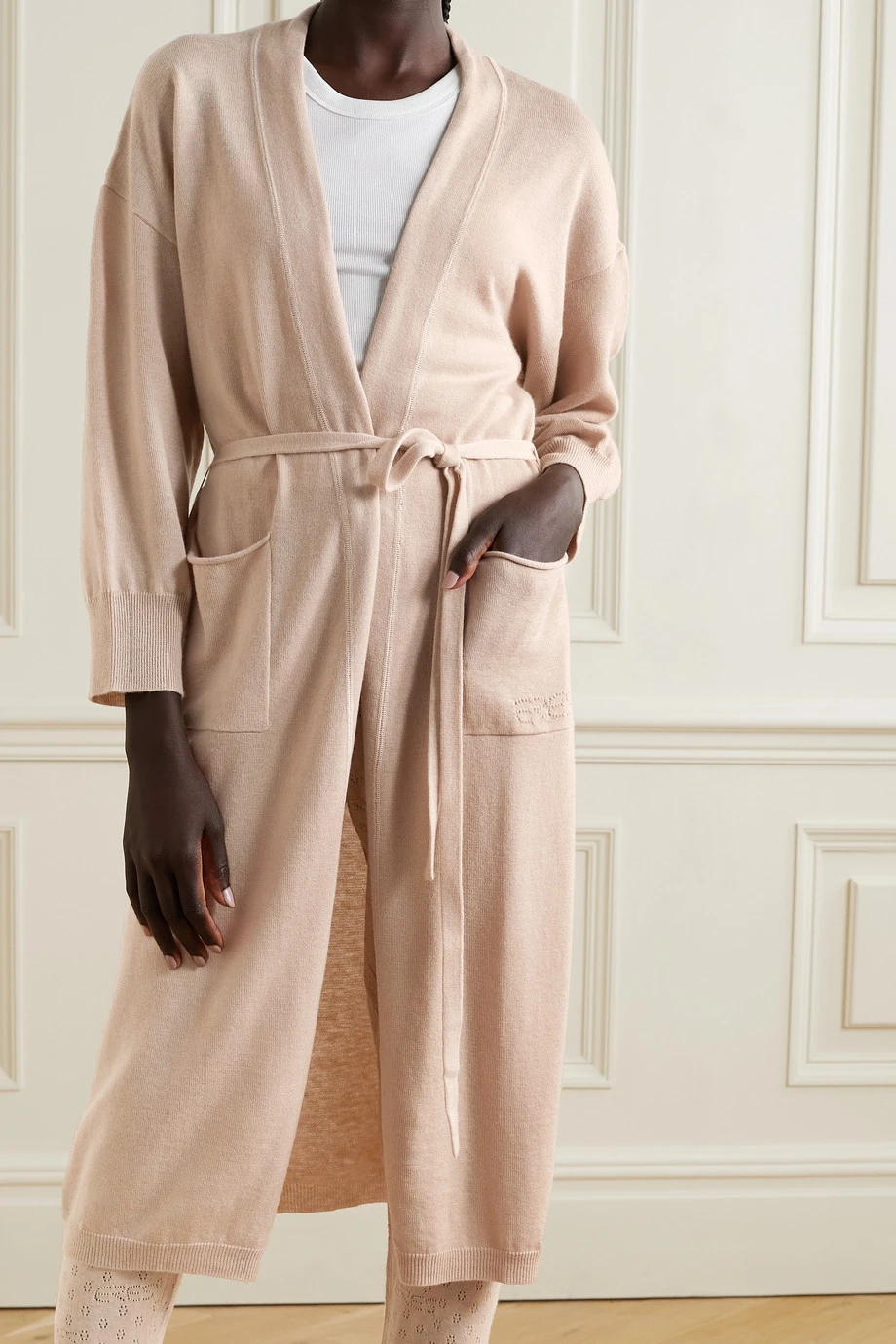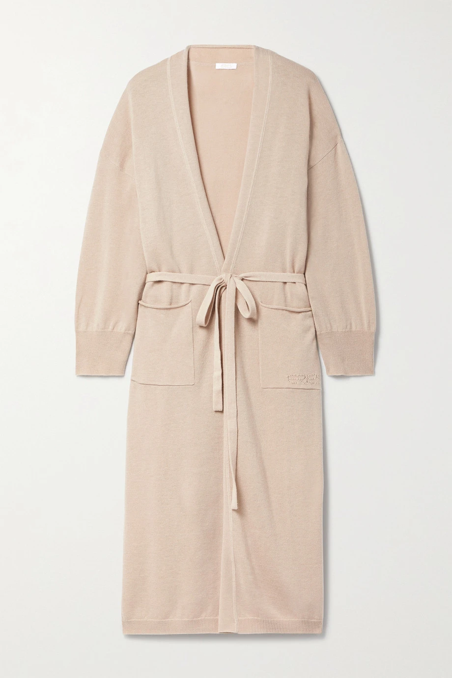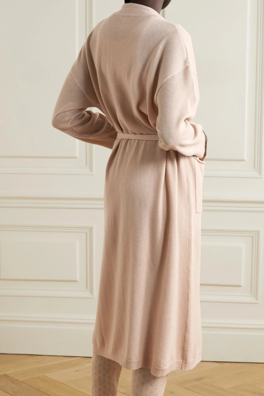 Cette veste longue signée Eres est tricotée à partir d’un mélange de laine et de cachemire délicieusement doux au toucher. Elle adopte une coupe décontractée agrémentée de poches plaquées et d’une ceinture à nouer. Portez-la lors d’un moment de détente associée au T-shirt et au pantalon de survêtement assortis.